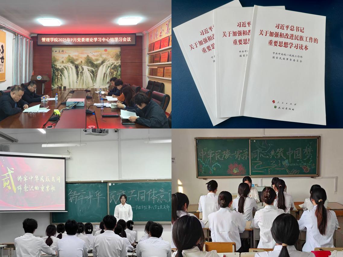 为深入贯彻落实中央民族工作会议精神,全面铸牢中华民族共同体意识,管理学院结合《关于开展民族团结进步宣传月系列活动的通知》要求,围绕“石榴花开结同心携手共筑中国梦”核心主题,聚力“谋实策、出实招、求实效”,以精准化举措强根基、以立体化宣传扩覆盖、以暖心化服务护成长,推动民族团结进步系列活动层层深入、全面铺展。夯基固本,紧握民族团结“指挥棒”。学院党委召开理论学习中心组学习会议,深入学习并为全体党支部书记发放了《习近平总书记关于加强和改进民族工作的重要思想学习读本》,全面传达学校活...