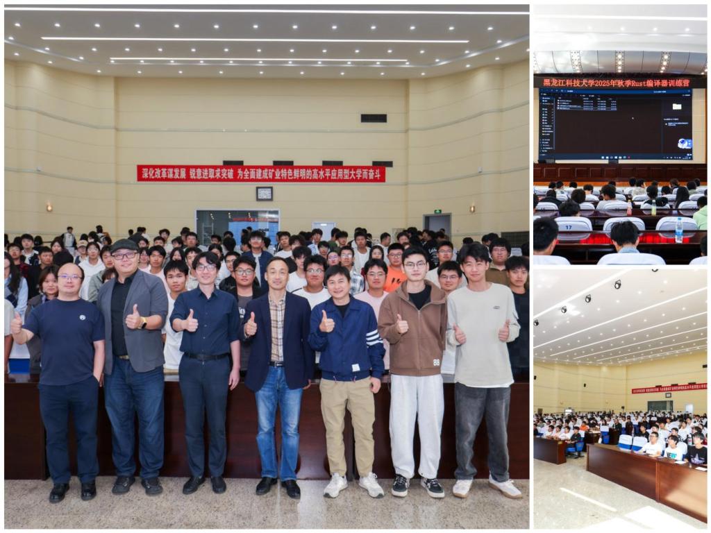 9月20日,由计算机与信息工程学院承办的2025年秋季rust编译器训练营在学校信息报告厅顺利举办。本次活动作为ccf校园行黑龙江科技大学站的核心环节,特邀华为专家马全一、联想集团张文杰、南京大学汪亮、冯洋、北京科技大学韩晓阳、西南石油大学邢国富等行业专家和精英担任讲师,学院200余名学生参与培训。计算机与信息工程学院院长赵金宪致欢迎词,并指出在开源技术成为数字经济发展核心驱动力的背景下,学院将持续深化产教融合,通过系列开源主题活动为学生搭建实践桥梁。本次rust编译器训练营作...