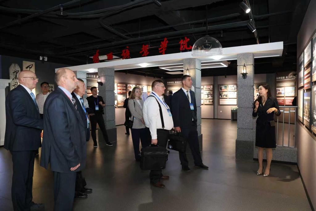 当日上午,中俄智慧矿山联合实验室揭牌仪式在黑龙江科技大学碳谷大厦举行。校长孟上九与俄罗斯科学院院士、哈巴罗夫斯克联邦研究中心主任拉斯卡佐夫·伊戈尔共同为实验室揭牌。揭牌后,嘉宾实地观摩了学校自主研发的智能开采平台、远程监控系统等科技成果,并参观了碳谷大厦、校史馆、地质馆与模拟矿井,深入了解学校在矿业工程领域的科研实力与人才培养成果。