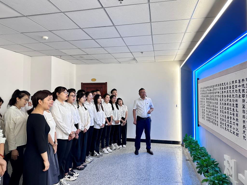 参观过程中,何景洋在门厅、序厅前带领全体人员领诵黑龙江科技大学赋;在主展厅讲述我校因煤而生,依煤而长,缘煤而兴的壮大之路;在专辑展厅、科大精神展厅讲述我校1947年至今77周年的精神之源。一张张写满历史的照片,一件件承载青春的物件,仿佛科大人奋斗的昨天就在眼前。何景洋在讲述中指出:我校在长期办学历程中,始终保持对党绝对忠诚,牢记初心使命,认真落实新时代党的建设总要求和新时代党的组织路线,以党纪学习教育为主线,充分发挥党建在引领、推动高校发展中的强大作用,为实现中华民族伟大复兴和高质量发展提供坚强后盾。
