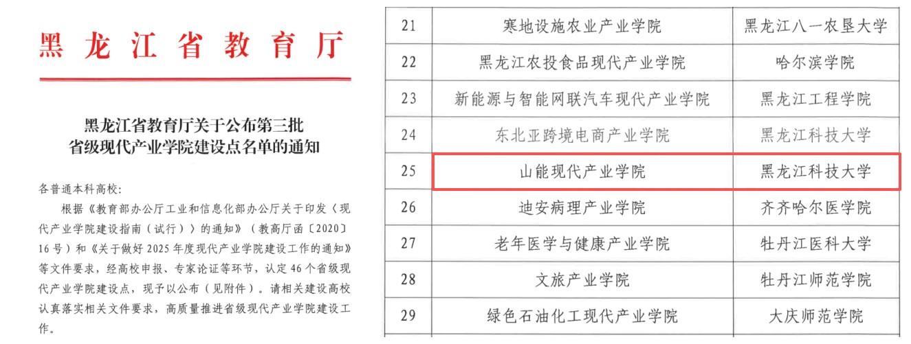 四、“山能现代产业学院”入选黑龙江省第三批现代产业学院