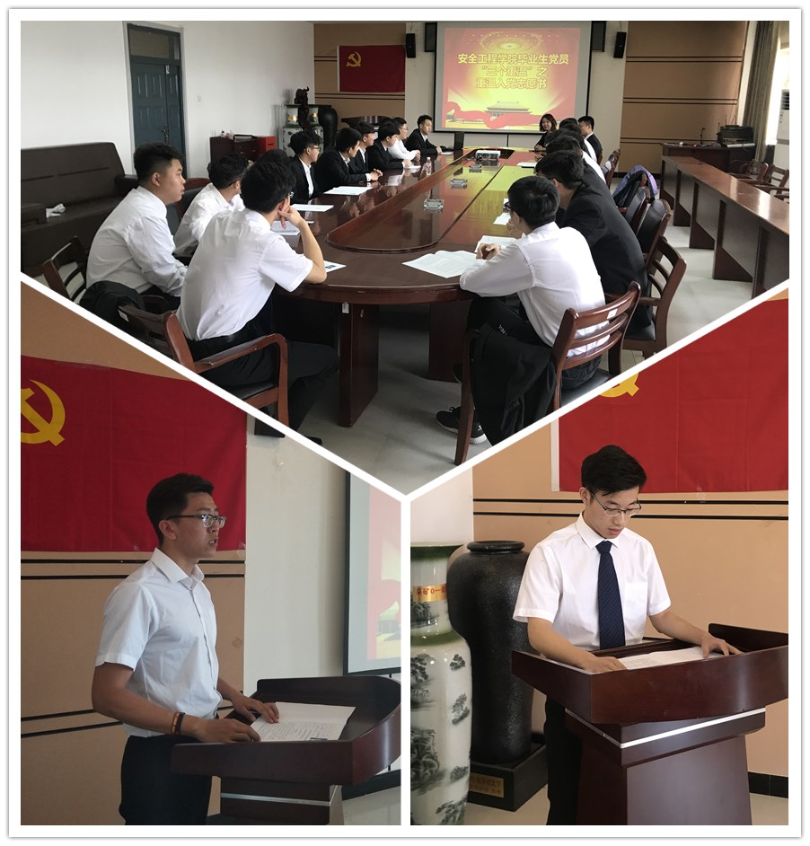 为了切实抓好毕业生党员的党性教育,教育引导毕业生党员“不忘初心,牢记使命”,牢固树立“四个意识”、坚定“四个自信”,始终在思想上政治上行动上同以习近平同志为核心的党中央保持高度一致,在毕业生党员离校之际,安全工程学院学生党支部依照工作实际,组织开展毕业生党员“三个重温”主题党日活动。