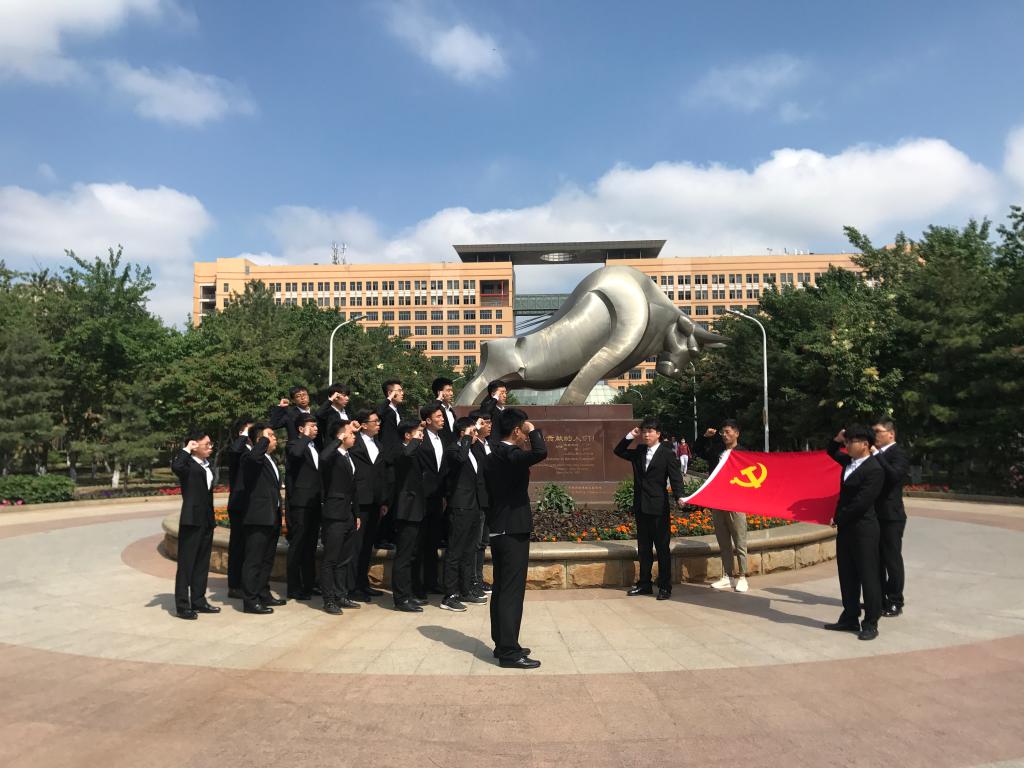 11点30分,学生党支部成员和22名毕业生党员身着正装一同前往学校劲牛雕塑像前,在孙永阳同志的领誓下重温入党誓词,牢记使命,牢记党的宗旨,保持党的先进性,强化身份意识。
